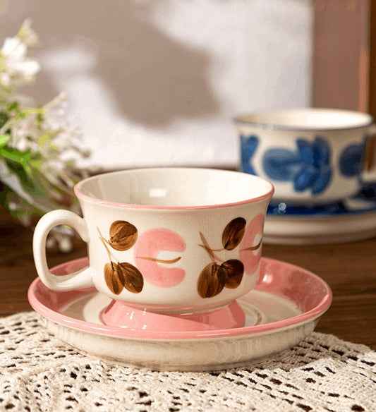 Floral Ceramic Mug and Saucer Set